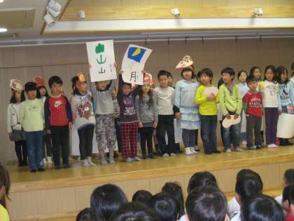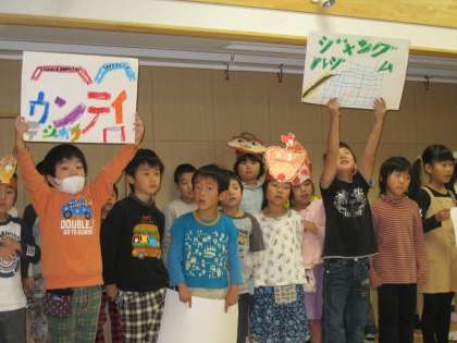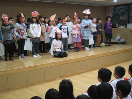 学校の勉強や行事,英語の劇遊び,学習発表会の「くじらぐも」の歌などを発表しました。