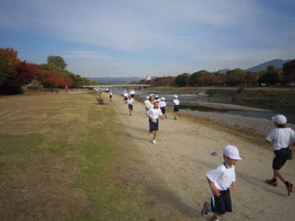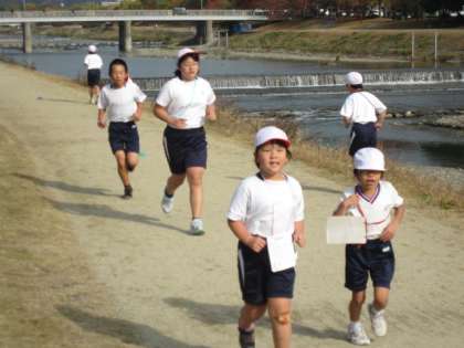 時間が過ぎると、さすがに続けることが難しくなります。そんな中でも、走り続ける子がたくさんいました。歩いても、また走り、また歩いて走るといったがんばりの子もいました。