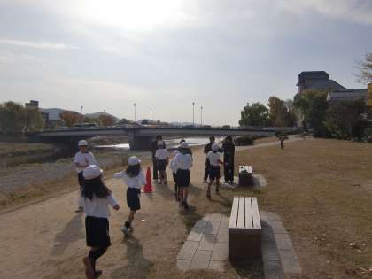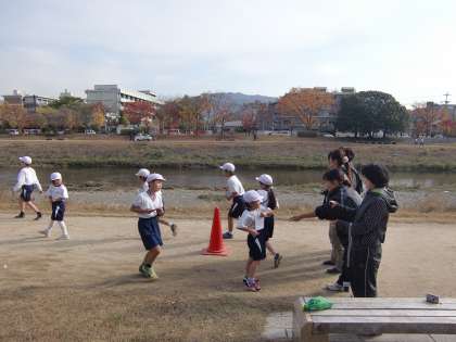 荒神橋の上手をスタートして,この折り返しをグルグル回ります。制限時間内に何周回れるかという大会です。周回数を競うのではなく,自分の体力体調に合わせて粘り強く走り切るのがテーマです。