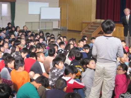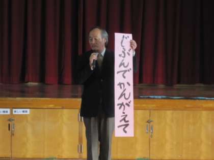 それから、子どもたちにたずねられました。「あなたはいい学校にするために自分でできることを何かしていますか。」とたずねられました。何人かの子は、手を挙げてくれましたが、自分のことを話せない子やまだ決められていない子もいました。