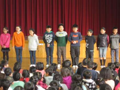 3年生以上の後期の代表委員が決まりました。朝会の時に一人ひとりが自分の意気込みを話してくれました。自分たちで学校を変えるぐらいのパワーあふれる代表委員会になって、どんどん明るく楽しいしていってほしいです。