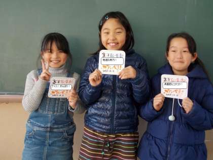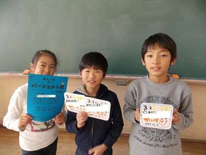 百人一首をがんばっています。こぶしをきかせた百人一首が教室のいたる所から聞こえてきます。100枚達成した子達は、何度も繰り返して聞かせてくれます。また、最初はあまり興味を持たなかった子達も「やってみよう。」と自分のペースで頑張っています。