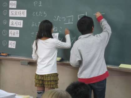 ハングルは、子どもたちにとっては暗号のようですが、学習していくうちに、気付くことがたくさんあったようです。学習を通して、文化の違いやよさに親しみをもって触れることができたと感じました。