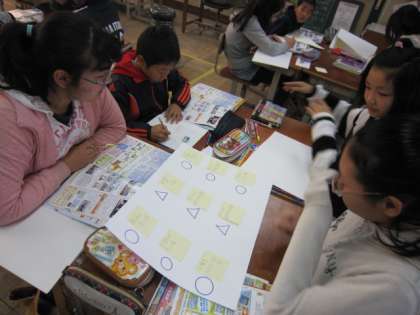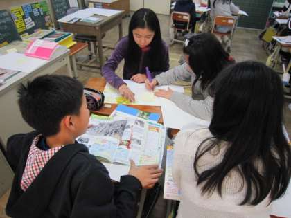 6年生は、社会科で「新しい日本 平和な日本へ」という単元の学習をしました。日本国憲法がつくられた時の願いが、今現在、本当には実現されているのかどうかをグループで話し合いながら考えました。