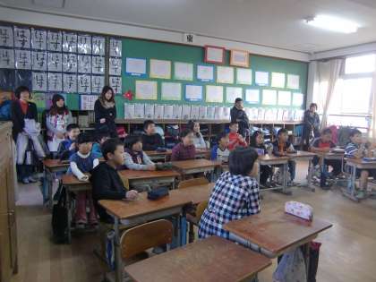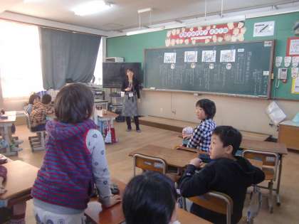 4年生は高齢者の問題を考える授業を見ていただきました。写真は4の1のものです。