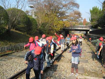 線路の幅がこんなに広い!!と,驚きの声を上げていました。