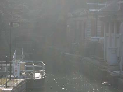第一・第二疏水の合流点を眺めました。あのトンネルが琵琶湖につながっているんだね。琵琶湖からここまで落差が4メートルだそうです。よく長い距離をたったそれだけの高低差で水を引いてきたものだと,ただただ感心します。