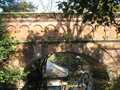 水路閣に着きました。子どもたちが,この天井にさっき歩いたそばを流れていた疏水が流れているということを実感できた瞬間でした。