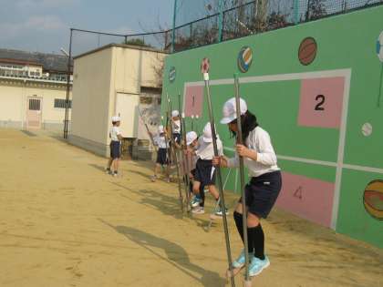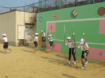 2組の体育のフレアースポーツも今日が最後でした。竹馬の挑戦も最後なのでがんばりました。自己ベストを目指そうと慎重にバランスを取って歩みをすすめていました。