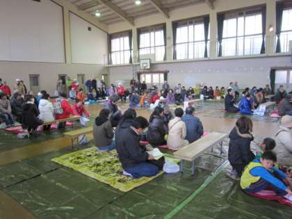 今日の「防災の集い」では、避難所運営訓練も行われました。参加した各町が、体育館の指定の場所でそれぞれの役割に分かれて訓練をしておられました。