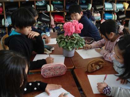4年生は,色鮮やかなシクラメンを木版画でします。