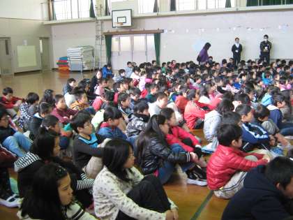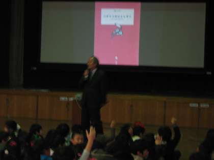 体育館に全校児童が集まり,校長先生の読み聞かせを聞きました。今年の絵本は「ハチドリのひとしずく」というお話です。世界で一番短いお話かもしれないというくらい短いお話でした。