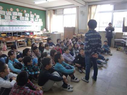 昨年は『はしのうえのおおかみ』という話を題材に「やさしさって何だろう?」「親切ってどういうことだろう?」ということをみんなで考えました。気づかせたかったのは,「(理屈ではなく)親切にすると気持ちがいい」ということでした。