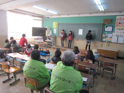 今日の町別集会でも、見守る隊や地域委員のみなさんにお世話になりました。地域の危険個所や、子ども110番の家などを教えていただいたり、子どもたちの気になる点を話してくださいました。ありがとうございました。