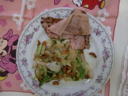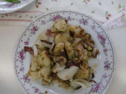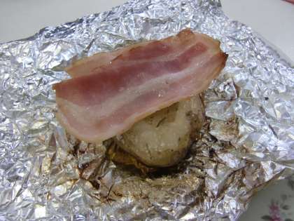 写真下…ジャーマンポテトで残ったジャガイモの上にベーコンをのせて