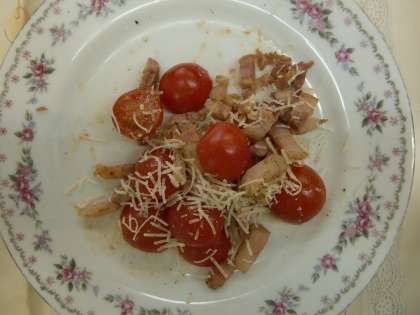 写真下…スクランブルエッグのベーコン入りホワイトソース仕立て