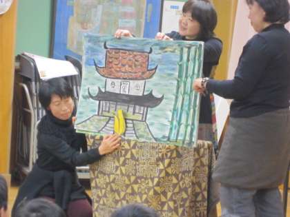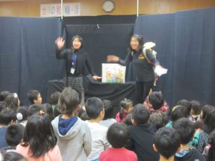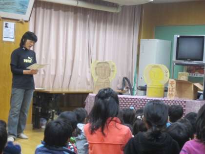 子どもたちが楽しみにしていた「おはなしわくわくスペシャル」がありました。ナビゲーターの二人の司会で子どもたちを盛り上げて、楽しい世界へ引きずり込んでくださいました。「京の大仏はんと奈良の大仏はん」「宗旦狐」と2つのお話をはじめにしてくださいました。どちらも、楽しいオリジナルのアイデアがいっぱい詰まっていました。子どもたちも目をキラキラさせて、お話を聞いていました。