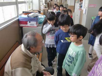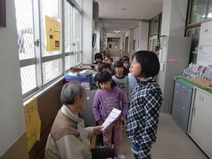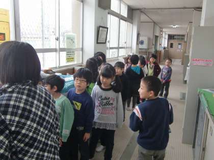 中間休みにも九九を聞いてもらいに来たんだそうです。雨降りは外遊びができないものですから,行列は普段より長くなるんです。