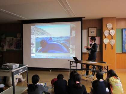 小さい時から、釣りが好きだったことから、今は、魚の生態を研究されています。昨年の今ごろは、ちょうど南極に行っておられました。ペンギンにつけたビデオカメラが撮った南極の海の中の映像などを見せていただきました。調査がとても楽しく、また行きたいともおっしゃっていました。とても忙しくされていて、世界を飛び回っておられます。とても身近にこのような方がおられ、子どもたちの夢も膨らんだことでしょう。