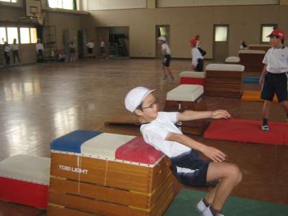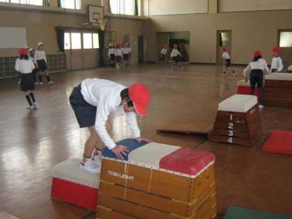 3年生は,今,跳び箱となわとびを交互に学習しています。跳び箱の学習では「台上前転」の練習を始めました。前半は今までにできる技を。後半は新しい技に挑戦を。台上前転は少し恐怖感もありますが,それを乗り越えることも学習の一つです。