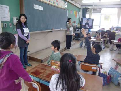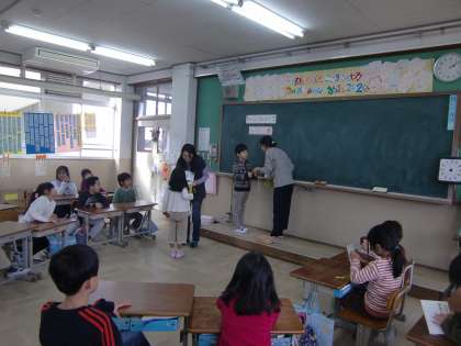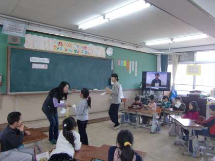 2月7日の研究発表会に向けて,2年生の英語活動の授業に英語ボランティアの方が来てくださいました。過去に何度も来ていただいている保護者の方です。2月の本番には3名の方が授業をサポートしてくださる予定です。
