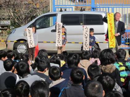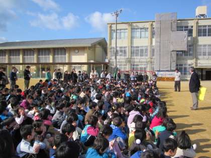ちょうどこの時間に「すこやか学級」も行われていたので、校内放送にしたがって、参加されている地域の方も一緒に訓練に参加していただきました。
