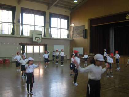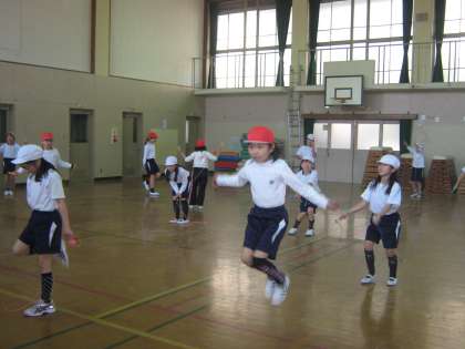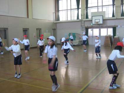 3年生の体育で「なわとび」の学習をしています。今日は3年生合同で体育をしました。前回しや駆け足跳び等を,1分間で何回跳べるかを自分で数えました。そして,その後に跳んだ回数を手をあげて報告してもらいました。二重跳びの回数もそれぞれが昨年より増えていました。