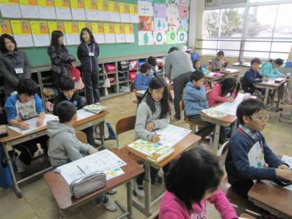 3年生は、1時間目1組が算数、2組が保健体育でした。