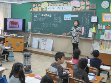 1年生の1時間目は算数でした。朝から一番たくさんの保護者の方が来られていました。子どもたちも張り切っていました。