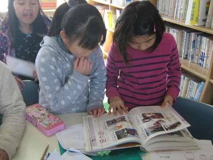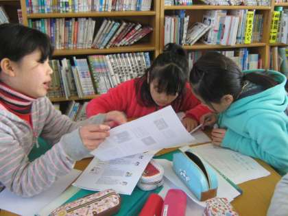 発表の形は,コンピューターの発表用ソフトを使ってする予定です。今日は,どんな内容にするか,一枚一枚の発表の下書きを相談しながら進めました。