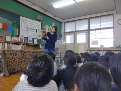 毎週水曜の中間休みは,『おはなしわくわく』の皆さんによる絵本の読み聞かせ会。今日は,『だんごむし そらをとぶ』というお話を読んでくださいました。