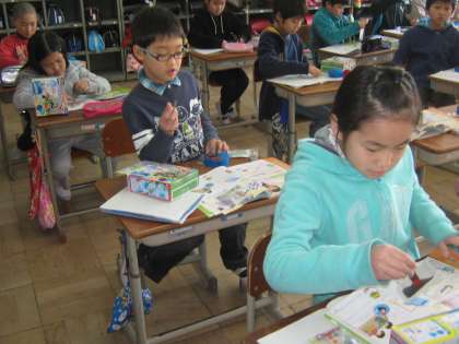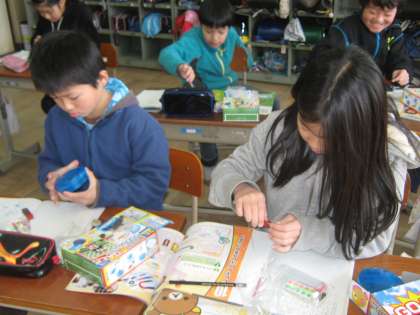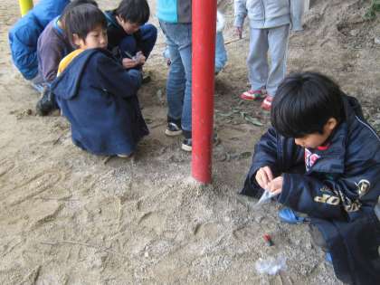 3年生の理科で磁石の学習を始めました。磁石に引きつけられる物,引きつけられない物を予想して,実験を進めました。前の学習の「豆電球であかりをつけよう」の時には明りがついたアルミニウムや銅が,今回は磁石に引き付けられないことが予想と異なっていて,不思議だなあと感じた子も多かったようです。また,運動場の砂場で砂鉄探しもしました。