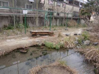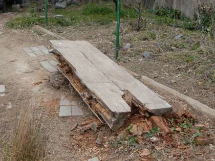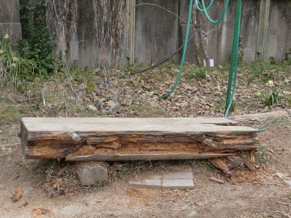 またまた冬枯れのビオトープです。こんどは丸太を半分に割って作ったベンチ。すっかり朽ちてしまっています。十分役目を果たしたよと言いたげな老いたベンチです。