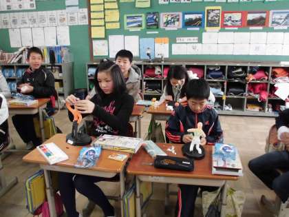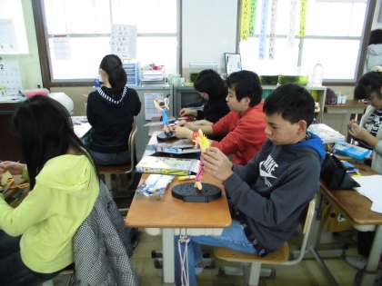図画工作で「12年後のわたし」〜12年後の自分をイメージして作っています。粘土に色をつけて・・・もう少しでできあがります!!!図工展で展示します。どうぞ、ご覧ください。
