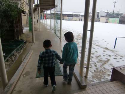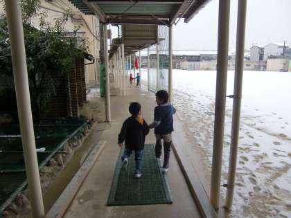 今日は朝からずっと雪が降り続く大変な天気になりましたが,予定通り,半日入学を行いました。