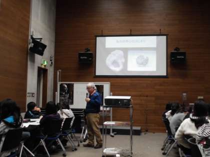 水球選手、デザイナー、生物研究者、外国から来られている研究者とたくさんの先生方のお話を聞いてきた最終回。今回は京大博物館の館長大野先生のお話を聞きに、京大博物館へ出かけました。博物館では、3階の講演室で大野先生が今の研究をしようと思ったきっかけや、これまでの研究についてなど興味深いお話を聞かせてもらいました。