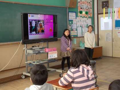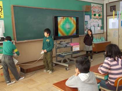 発表ソフトを使って、写真や言葉ののせ方を工夫して発表しました。