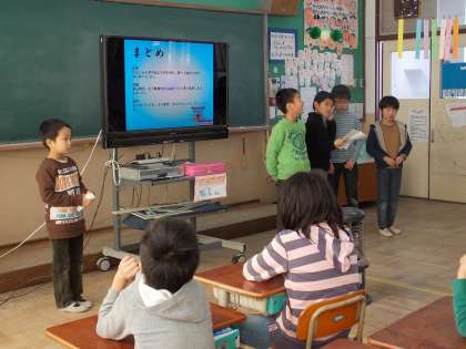 今回は、インターネットを使って調べて、パソコンでまとめるということに挑戦しました。ローマ字打ちに苦労しながらもアニメーションまで工夫した素晴らしい発表となりました。