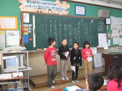 今日の参観日では,「節分祭」について発表しました。パソコンの発表用ソフトを使うのは初めてでしたが,どのグループも自分たちで次のスライドを出し,上手に操作できました。