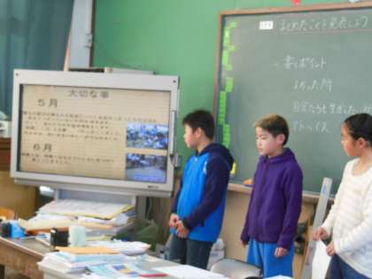 子どもたちが学習してきた「お米作り」についてまとめたものを発表しました。保護者の方の感想を聞くと「とてもわかりやすかったです。」「見入ってしまいました。」など子どもたちのがんばりをたくさんほめていただきました。