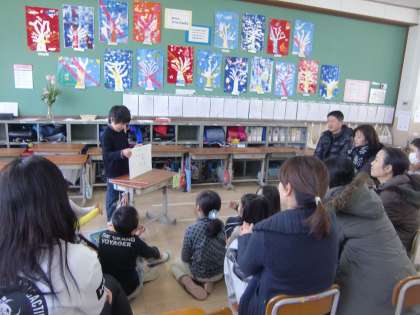 2年生の授業は,自分の成長の様子や今後頑張りたいことを絵巻物,紙芝居,絵本などにまとめて発表しました。