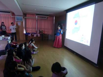 日本から一番近い国である韓国のことを教えていただきました。来てくださったのは同志社大学に留学生として来ている韓国人女性です。とても日本語が上手でまずはそれに驚きました。