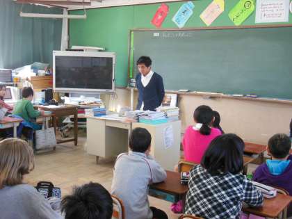 今日は,今までもお米作りでお世話になっている,京都大学の稲の博士に来ていただき,今まで学習してきたことを発表しました。子どもたちは活動の様子やそこで気付いたこと,調べたことを発表しました。また,学習を通して学んだことを伝えました。