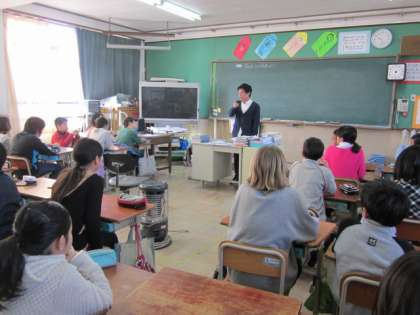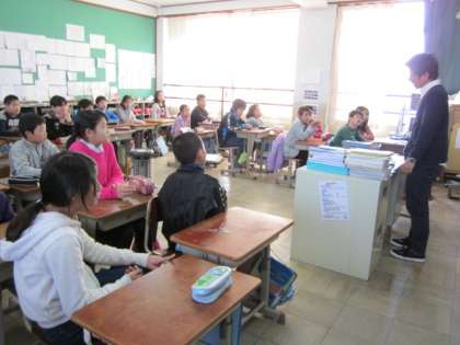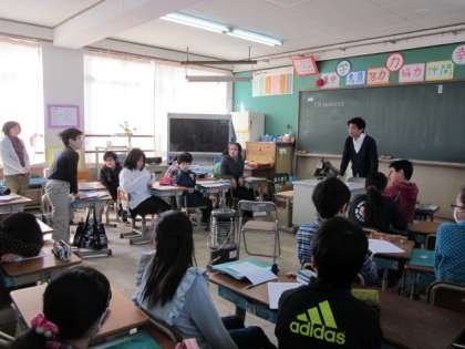 5年生が、『総合的な学習の時間』の『稲作り』でお世話になった京都大学のゲストティーチャーに、稲作りについての発表をしました。