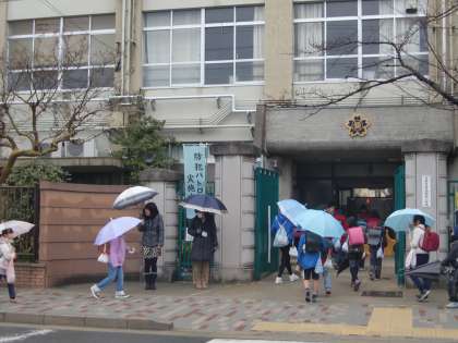 3月5日,今朝は声かけ登校日です。小雨が降っています。6年生は市内オリエンテーリングで終日学校にいません。