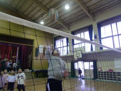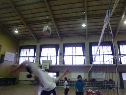 部活バレーの練習風景です。ジャストミートした時のスパイクはこう見えてもかなりの威力でしたよ。