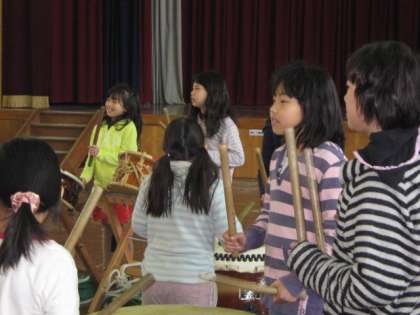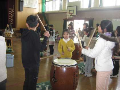 中間休みに,体育館で「和太鼓ミニ発表会」がありました。3年生も寒さの厳しい中でも張り切って演奏しました。