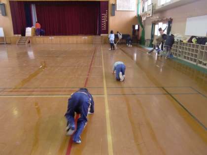 PTA総会の後,体育館掃除です。