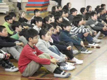 6年生からの出し物のひとつ,「生きる」の最中の5年生の表情はとても真剣なものでした。