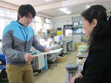 校長先生が、出張でおられなかったので、代わりに渡しました。